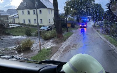 Am 07. September 2022 wurden wir gegen 18:15 Uhr gemeinsam mit der Feuerwehr Kühnhaide zu einer technischen Hilfeleistung auf den Heidenweg in Rübenau alarmiert. Laut Meldung wurde durch starke Regenfälle ein Firmengelände sowie der Keller eines Hauses überflutet. Beinahe zeitgleich wurden uns zwei weitere Einsatzstellen auf der Einsiedler Straße zugeteilt, weshalb wir zur Unterstützung die Feuerwehr Zöblitz nachalarmierten. Wir pumpten die Keller aus und sorgten mit Sandsäcken und kleinen Rinnen für eine provisorische Rückhaltung des Wassers. Im Anschluss wurden noch stark verschlammte Straßenteile gesäubert. Gegen 22:30 Uhr konnten wir uns wieder einsatzbereit im Gerätehaus melden - unsere Wehr war mit 13 Kameraden im Einsatz. Vielen Dank für die Einsatzbereitschaft aller beteiligten Kameraden und natürlich auch für die reibungslose Zusammenarbeit.