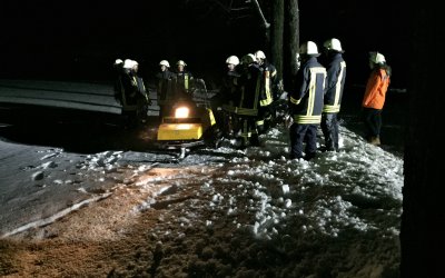 Zum Ausbildungsdienst am 23. Januar 2018 befassten wir uns mit dem Thema Loipenrettung bei Skiunfällen. Mithilfe unserer Schleifkorbtrage vom LF10 und dem Skimobil vom örtlichen Bauhof besprachen wir das Vorgehen bei der Suche und der Versorgung von verunfallten Personen im Loipengebiet. Gerade in unserer Region kann es in dieser Jahreszeit durchaus zu einem solchen Einsatzszenario kommen, wenn man die Vielzahl an den mehr oder minder erfahrenen Wintersportlern im Loipengebiet betrachtet.