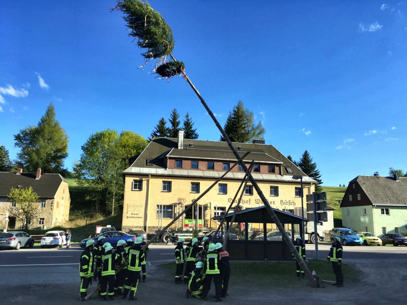 Am 30. April 2018 wurde der Rübenauer Maibaum gegen 18:00 Uhr wieder traditionell durch die Kameraden unserer Wehr gestellt. Nach einigen Vorbereitungen war der Baum nach etwa einer halben Stunde allein durch Muskelkraft errichtet. Für das leibliche Wohl wurde natürlich auch wieder bestens gesorgt - dafür ein Dank an die Kameraden unserer Jugendfeuerwehr.