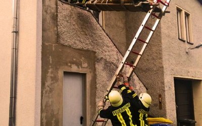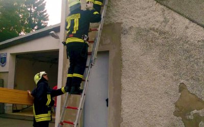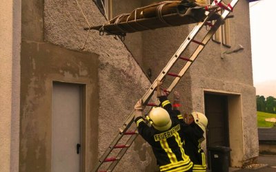 Zum Dienst am 26. Juli 2016 stand die Personenrettung auf dem Plan. Ein Dummy wurde aus dem 1. Obergeschoss des Feuerwehrdepots unter Anwendung einer sogenannten Leiterhebel geborgen. Darunter versteht man die Kombination von Steckleiterteilen und einer daran befestigten Krankentrage.