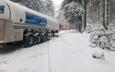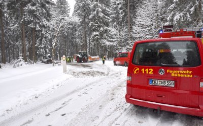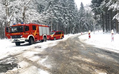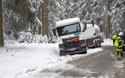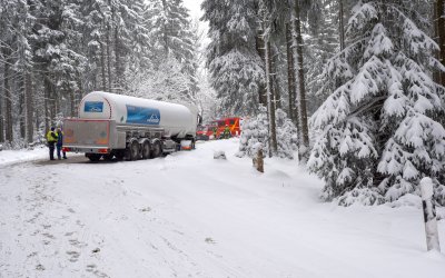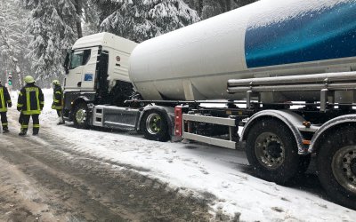 Am 06. April 2021 wurden wir gegen 09:59 Uhr mit dem Stichwort "ABC 1 - LKW in Graben" auf den Brückenweg Richtung Kühnhaide alarmiert. Ein tschechischer Gefahrgut LKW der CO2 geladen hatte, rutschte in einer Kurve bei schneeglatter Fahrbahn mit der Zugmaschine in den Graben und blockierte mit dem quergestellten Anhänger die S216 zwischen Rübenau und Kühnhaide. Wir sicherten die Einsatzstelle bis zum Eintreffen zweier Bergungs-LKW ab - die S216 blieb bis ca. 15 Uhr voll gesperrt.