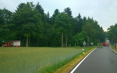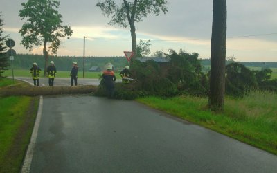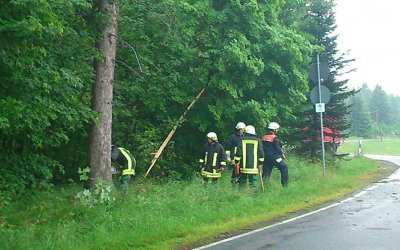 Aufgrund von extrem schwülwarmer Luft kam es am 05. Juli 2015 zu schweren Unwettern in Mitteldeutschland. So auch in Rübenau: auf der Waldstraße schlug kurz vor der Kreuzung zur S217 (Görkauer Straße) ein Blitz in einen Baum ein. Dieser drohte nach dem Vorfall aufgrund von Wind und Sturmböhen auf die Straße abzuknicken. Um die Gefahr zu beseitigen wurde gegen 16:44 Uhr die Freiwillige Feuerwehr Rübenau alarmiert. Die 15 ausgerückten Kameraden haben den Baum kontrolliert gefällt und anschließend von der Fahrbahn beseitigt. Gegen 18:00 Uhr war der Einsatz beendet. Der Kreuzungsabschnitt war während der gesamten Einsatzarbeiten voll gesperrt.