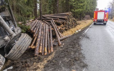 Am 10. Januar 2020 wurden wir gegen 07:50 Uhr gemeinsam mit den Feuerwehren Zöblitz und Olbernhau zu einem Verkehrsunfall auf die S 216 zwischen Rübenau und Kühnhaide alarmiert. Ein aus Richtung Kühnhaide kommender LKW der Marke MAN geriet vermutlich aufgrund eines Reifenplatzers rechts auf das Straßenbankett und krachte dort seitlich gegen einen Baum und fällte diesen. Nachdem der Lastzug noch gegen einen am Waldrand gelagerten Holzhaufen krachte, kippte er schließlich seitlich in den Straßengraben um. Der Fahrer des LKW kam verletzt ins Krankenhaus. Die S216 wurde im Bereich der Unfallstelle durch unsere Wehr für die Durchführung der nötigen Einsatzarbeiten voll gesperrt. Die auslaufenden Betriebsstoffe wurden mithilfe von Metallwannen aufgefangen, die Fahrzeugbatterien vom Bordnetz getrennt und der Brandschutz sichergestellt. Wir waren mit 12 Kameraden vor Ort und konnten den Einsatz mit allen nötigen Nacharbeiten gegen 12:00 Uhr beenden.
