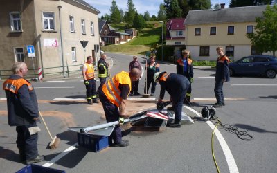 Am 11. Juni 2017 wurde die Freiwillige Feuerwehr Rübenau gegen 16:04 Uhr zu einer Ölspur auf den örtlichen Dorfplatz alarmiert. Ein PKW der Marke Ford krachte im Bereich des linken Vorderrads gegen eine Verkehrsinsel und in dessen Folge kam es zum Auslaufen diverser Betriebsmittel, die von den ausgerückten Kameraden abgebunden wurden. Mithilfe eines Trennschleifers wurde im Anschluss noch das beschädigte Verkehrsschild und die Insel von der Fahrbahn entfernt. Verletzt wurde bei dem Vorfall niemand - gegen 16:40 Uhr konnten die 12 ausgerückten Kameraden den Einsatz beenden.