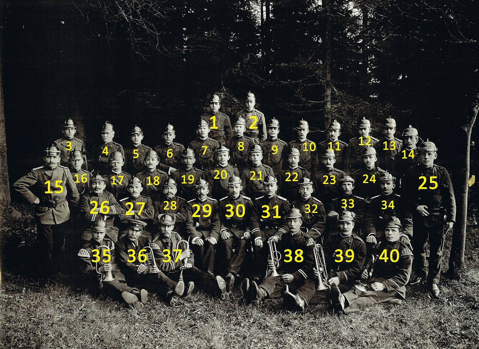 Das folgende Foto stammt aus dem Jahre 1912 und zeigt die damalige, aktive Kameradschaft der Freiwilligen Feuerwehr Rübenau. Kommandant über die 39 Kameraden war zu dieser Zeit Karl Gautel (Bild 2 | Position 30). Die wichtigsten Ereignisse vor und nach dieser Bildaufnahme haben wir in einer Zeitleiste zusammengefasst. Um die Namen der auf dem Foto abgebildeten Kameraden besser zuordnen zu können, ist das identische Foto, bloß mit Nummerierung darunter noch einmal abgebildet.