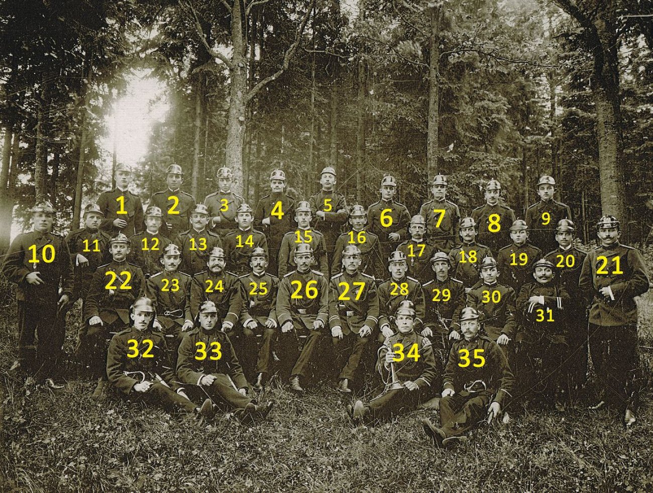 Das folgende Foto stammt aus dem Jahre 1914 und zeigt die damalige, aktive Kameradschaft der Freiwilligen Feuerwehr Rübenau. Kommandant über die 34 Kameraden war zu dieser Zeit Karl Gautel (Bild 2 | Position 26). Die wichtigsten Ereignisse vor und nach dieser Bildaufnahme haben wir in einer Zeitleiste zusammengefasst. Um die Namen der auf dem Foto abgebildeten Kameraden besser zuordnen zu können, ist das identische Foto, bloß mit Nummerierung darunter noch einmal abgebildet.