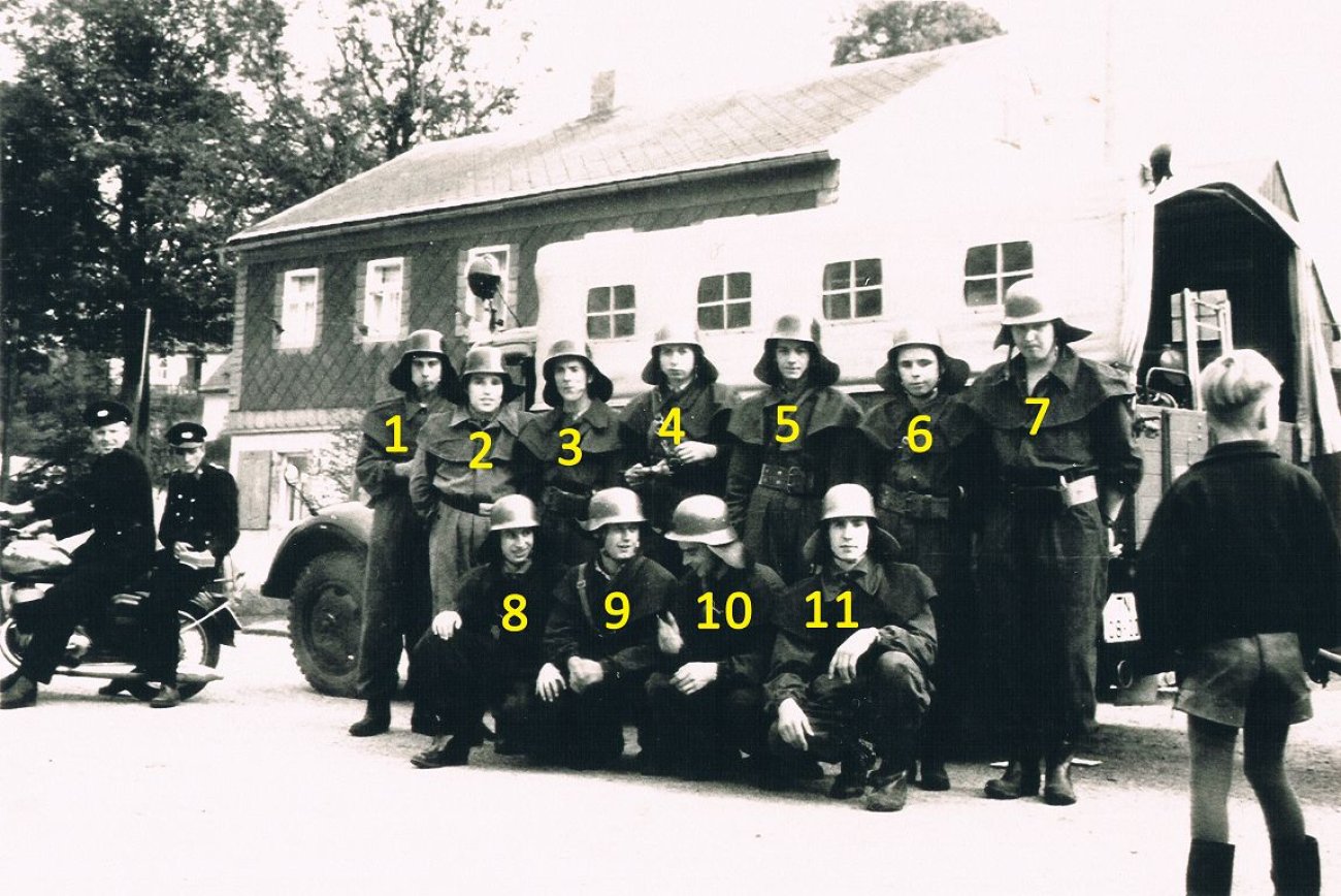 Das folgende Foto stammt aus dem Jahre 1963 und zeigt die damalige, aktive Kameradschaft der Freiwilligen Feuerwehr Rübenau. Wehrleiter der 12 Kameraden war zu dieser Zeit Kurt Döring. Die wichtigsten Ereignisse vor und nach dieser Bildaufnahme haben wir in einer Zeitleiste zusammengefasst. Um die Namen der auf dem Foto abgebildeten Kameraden besser zuordnen zu können, ist das identische Foto, bloß mit Nummerierung darunter noch einmal abgebildet.