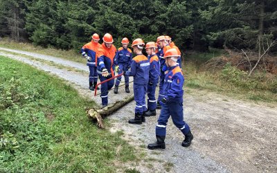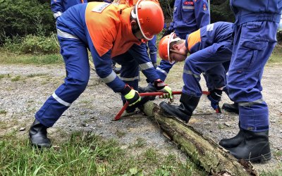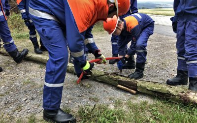 Das Wochenende wie bei einer Berufsfeuerwehr begann am Freitag Nachmittag mit dem Beziehen des Gerätehauses - im Schulungsraum errichteten die jungen Kameraden ihre Schlafplätze mit Feldbetten und Luftmatratzen. Unterdessen ertönte erstmalig die Alarmsirene und unsere Jugendfeuerwehr wurde zur Lage "TH1 - Baum auf Straße" beordert.