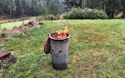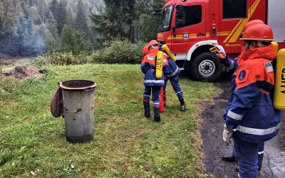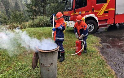 Kurz vor dem Mittagessen galt es noch einen Mülltonnenbrand zu löschen - mittels (Lösch-)Schaum wurden die Flammen erstickt und anschließend wurden noch einige Temperaturmessungen am betroffenen Abfallbehälter durchgeführt.