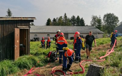 Zum Start am Freitag konnten die jungen Kameraden bereits einige Eindrücke als Publikum bei einer Mittelbrand-Einsatzübung unserer aktiven Abteilung gemeinsam mit den Feuerwehren aus Kühnhaide, Reitzenhain und Satzung sammeln. Danach durften die Kids über die Tage bei insgesamt 11 Übungseinsätzen selbst tätig werden: