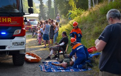 Im Anschluss einer jeden Einsatzübung führten wir eine kurze Nachbesprechung durch, in der wir sowohl passierte Fehler analysierten als auch sehr gut umgesetzte Aspekte würdigten. Natürlich bestand bei den Übungen zu keiner Zeit eine Gefährdung für Personen - weder für die Darsteller, noch für die Jugendfeuerwehr-Kameraden. Falls nötig, haben Einsatzkräfte der aktiven Abteilung unterstützend zur Seite gestanden oder für entsprechende Sicherungsmaßnahmen gesorgt. Dank einer sehr gute Teamarbeit zwischen erfahrenen und jüngeren Mitgliedern, konnten sämtliche Einsatzszenarien erfolgreich bewältigt werden.