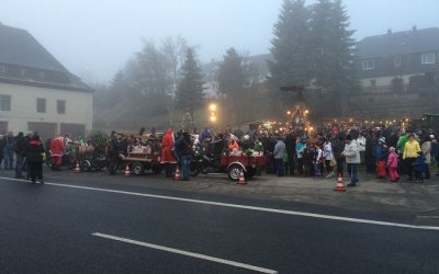 Traditionell versammelten sich am Wochenende vor dem ersten Advent wieder viele Dorfbewohner von Rübenau auf dem örtlichen Weihnachtsmarkt. Trotz der kalten Temperaturen und einer kleinen Verspätung des Posaunenchors, der wie jedes Jahr das Pyramidenanschieben einleitet, konnte die Veranstaltung erfolgreich eröffnet werden. Für das leibliche Wohl wurde auf dem kleinen Adventsmarkt bestens gesorgt: die Rübenauer Jugendfeuerwehr verkaufte in ihren zwei Buden Pommes, Hotdogs, Mandeln, Crépes und Kuchenlollies. Natürlich gab es auch noch andere Stände, wie zum Beispiel den Bratwurststand des Rübenauer Motorradclubs Zauberwald oder einen Stand für warme Kleidung, wenn einem die Wärme des Glühweins nicht ausreichte :-)