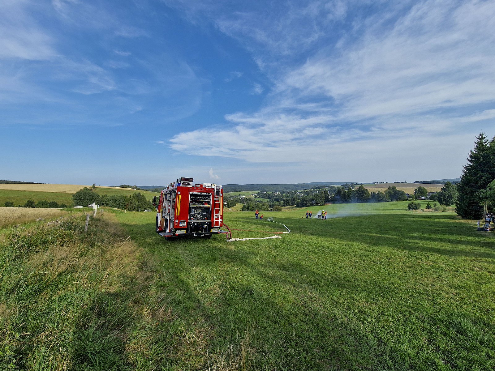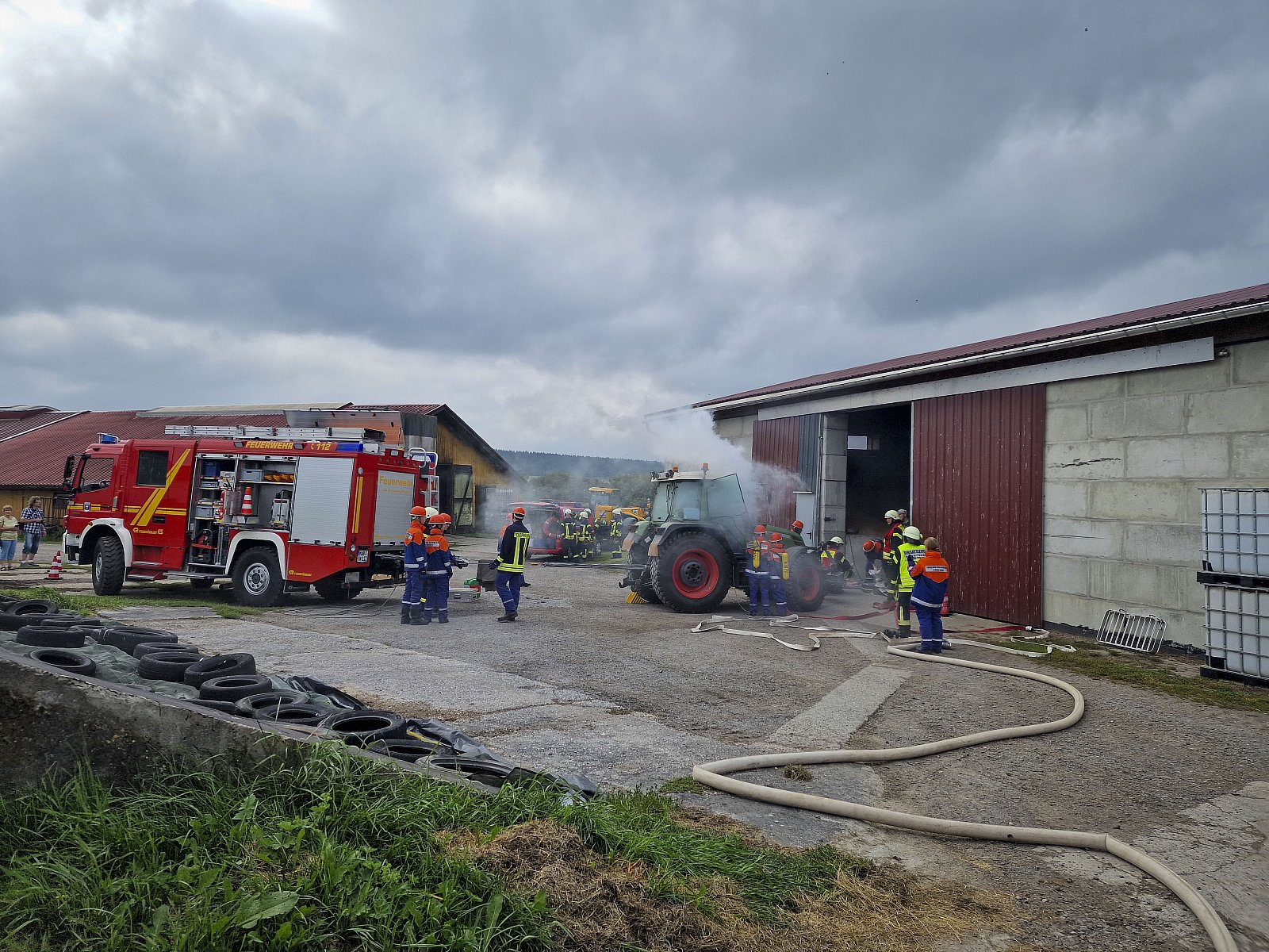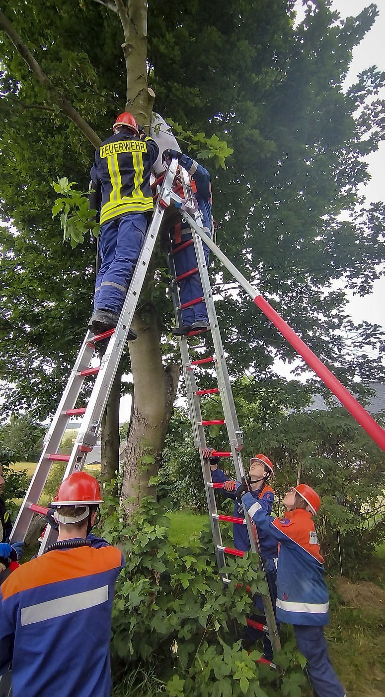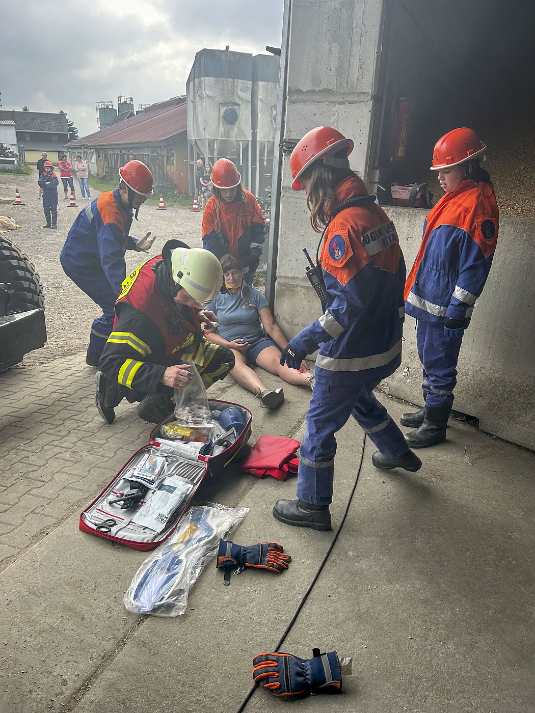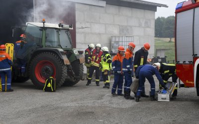 Am Samstag Nachmittag organisierten wir eine Schauübung auf dem Gelände des Landwirtschaftsbetriebs Mirko Hänel, zu der auch Eltern und interessierte Bürger anwesend waren. Bei dem simulierten Arbeitsunfall mit zwei verletzten Personen waren sowohl brandschutztechnische als auch rettungsdienstliche Maßnahmen erforderlich und die Zuschauer konnten die Abläufe unserer Jugendfeuerwehr hautnah miterleben - von der ersten Lageerkundung bis zur Übergabe an den Rettungsdienst. Vielen herzlichen Dank an Mirko Hänel für die Unterstützung und die Bereitstellung seines Betriebsgeländes. Die Softeisrunde im Anschluss war eine gelungene Überraschung und sorgte für eine erfrischende Abkühlung und strahlende Gesichter bei den Kids!