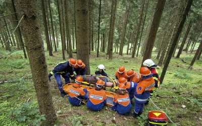 - Forstunfall im unwegsamen Gelände mit Patiententransport